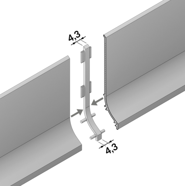 Anslutningsdel BASE 180° Vit är en anslutningsdel designad för att sammanfoga BASE-profiler i en 180° vinkel. Den möjliggör en säker och hållbar anslutning mellan profilerna.