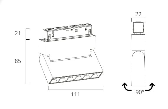 Lätt att installera i olika typer av 48V-skenor, vilket ger flexibilitet och gör det möjligt att placera armaturen där ljuset behövs mest. -