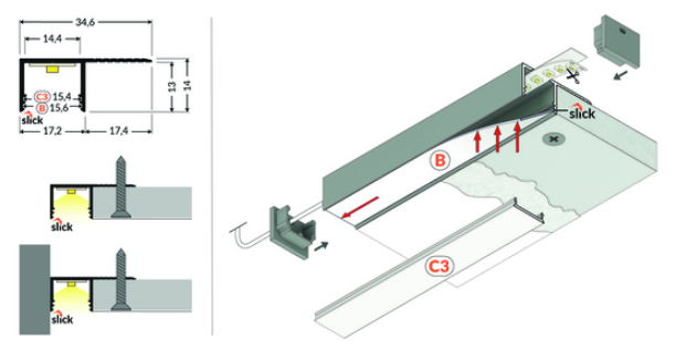 LED-profil PLANE14 SIDE BC3 4050 Anodiserad – För infälld och stilren belysning