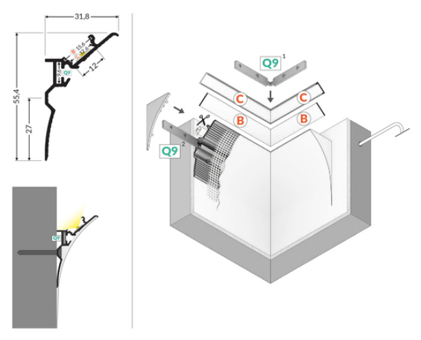 LED-profil SMOOTH12 BC/Q9 2000 Alu – För osynlig och atmosfärisk belysning