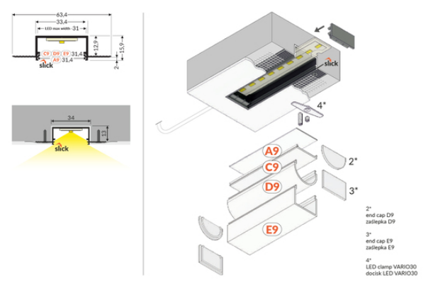 LED-profil VARIO30-04 ACDE-9 1000 Vit – För mångsidig och infälld belysning