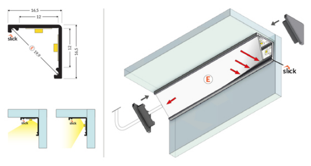 Denna profil är idealisk för installation i hörn och glasmontrar där en diskret och effektfull belysning önskas för att framhäva produkter.