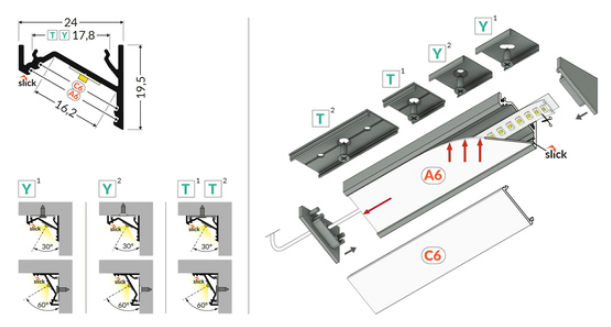 LED-profil CORNER16.v2 AC-6/TY 2000 Aluminium – För Hörninstallation