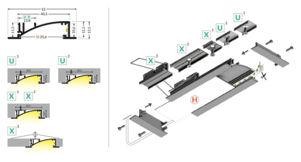Denna profil är idealisk för installation i väggar och tak där en diskret och dekorativ belysningslösning önskas.