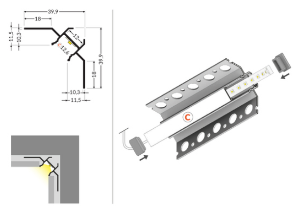 LED-profil UNI-TILE12 90deg C PLUS 1000 Anod – För precisionsbelysning i hörn
