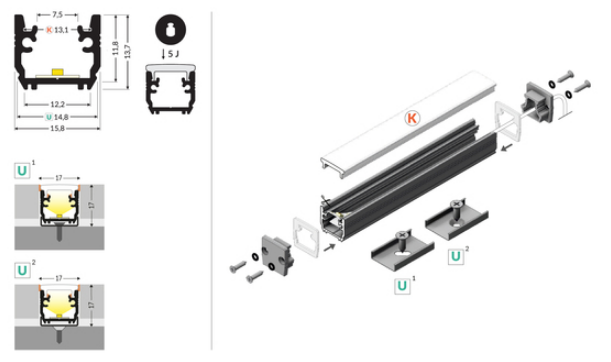 LED-profilen FLOOR12 K/U 1000 i anodiserad aluminium är en hållbar och stilren lösning för infälld golvbelysning. Den är utformad för att integreras sömlöst i golvmaterial och ger en professionell och säker belysningseffekt. Med en längd på 1000 mm och en maximal LED-bredd på 12 mm, är den idealisk för att skapa en modern och funktionell belysning i golv.