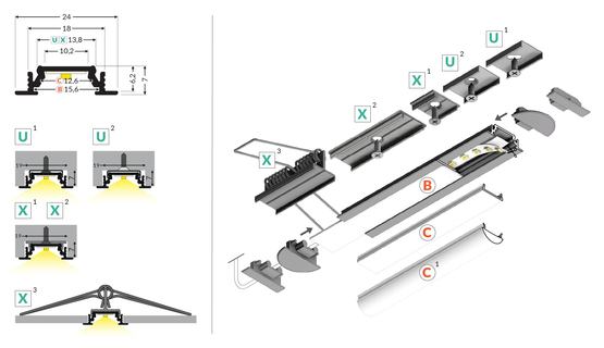 Perfekt för infälld belysning i möbler, väggar, tak och arkitektoniska installationer.