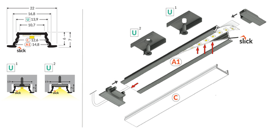 Perfekt för infälld belysning i möbler, väggar, tak och arkitektoniska applikationer.