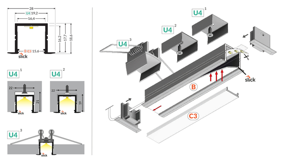 LED-profil SMART-IN16 BC3/U4 1000 Anodiserad – För Infälld Montering