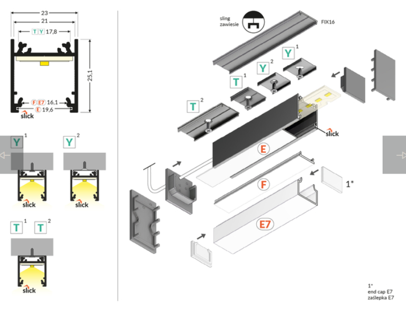 Denna kompletterande profil är utformad för LINEA20 och används för att placera LED-listen ännu närmare diffusorn. Detta resulterar i ett mer fokuserat ljus och skapar en intensiv ljuslinje, vilket gör den idealisk för att framhäva interiördetaljer eller skapa en modern atmosfär.