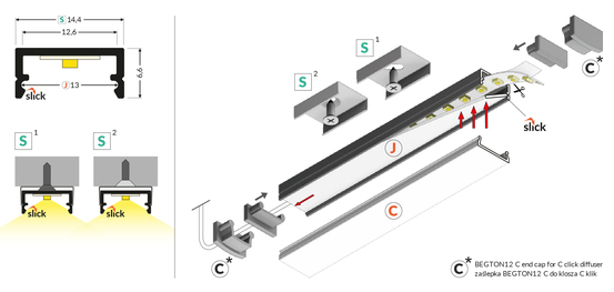 BEGTON12 J/S är en högkvalitativ LED-profil i svart anodiserat aluminium, perfekt för eleganta och diskreta ljusinstallationer. Med en max LED-bredd på 12 mm och robust konstruktion ger den både skydd och effektiv värmeavledning för LED-strips.