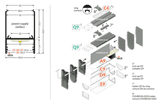 LED-profil COMBO30-01 ACDE-9 2000 Vit – Bred och mångsidig aluminiumprofil