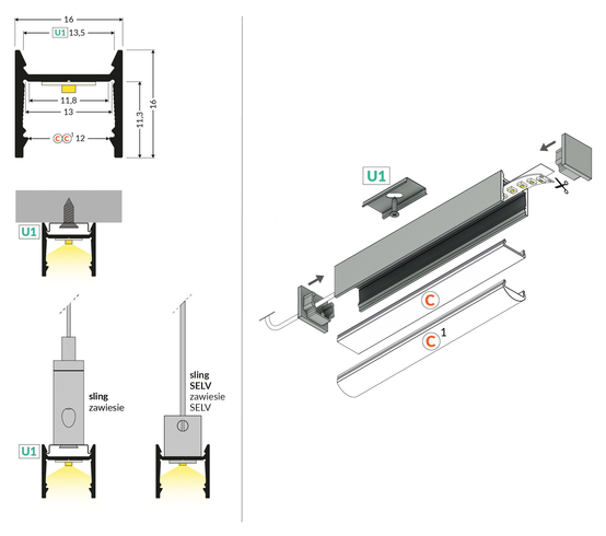 LED-profil LEVEL12 C/U1 2000 i aluminium är en hållbar och stilren lösning för ytmontage av LED-lister. Med en längd på 2000 mm och en maximal LED-bredd på 12 mm är denna profil perfekt för att skapa en effektiv och professionell belysningsinstallation.