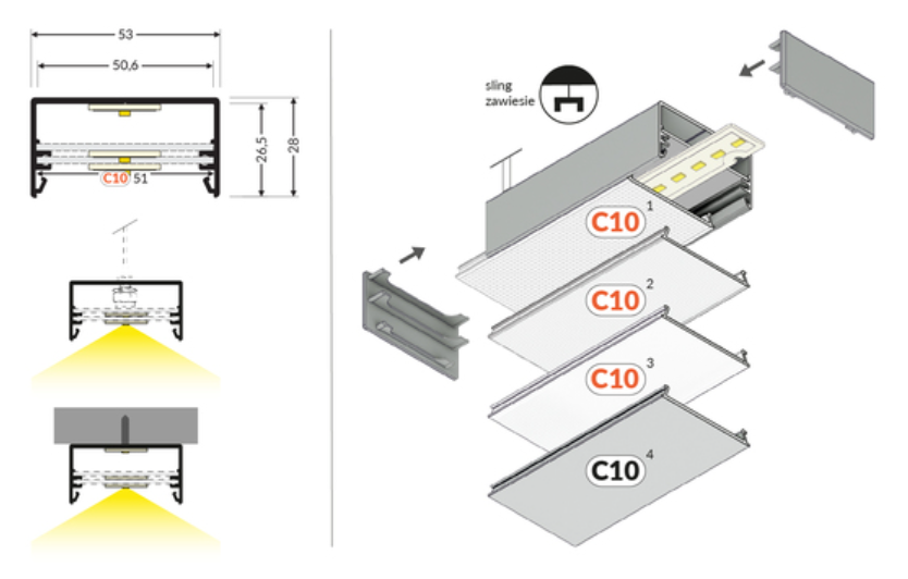 LED-profil LOWI C10 2000 Anodiserad – För LED-installationer