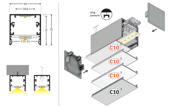 Perfekt för linjär belysning i bostäder, butiker, kontor och industriella miljöer.