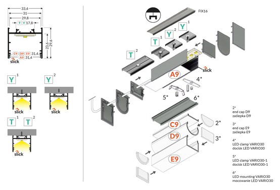 LED-profil VARIO30-02 ACDE-9/TY 1000 Anodiserad – Stilren och mångsidig aluminiumprofil