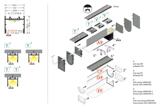 LED-profil VARIO30-02 ACDE-9/TY 2000 Vit – Stilren och mångsidig aluminiumprofil