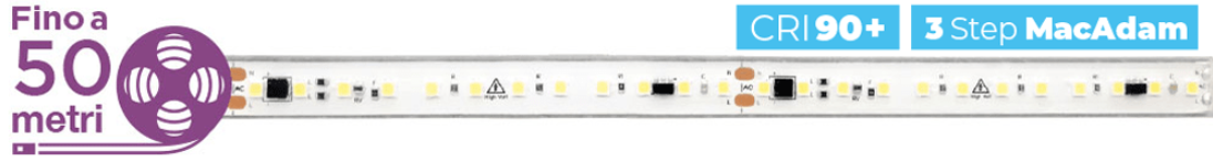 Denna flexibla LED-strip är utformad för linjär belysning med monokromt ljus och aktivt skydd mot kortslutning för ökad säkerhet. Tack vare möjligheten att ansluta direkt till växelström utan extra strömförsörjning blir installationen enkel, särskilt i trånga utrymmen. Finns i längder på 5, 10, 20 eller 50 meter för att skapa långa ljuslinjer utan spänningsfall.