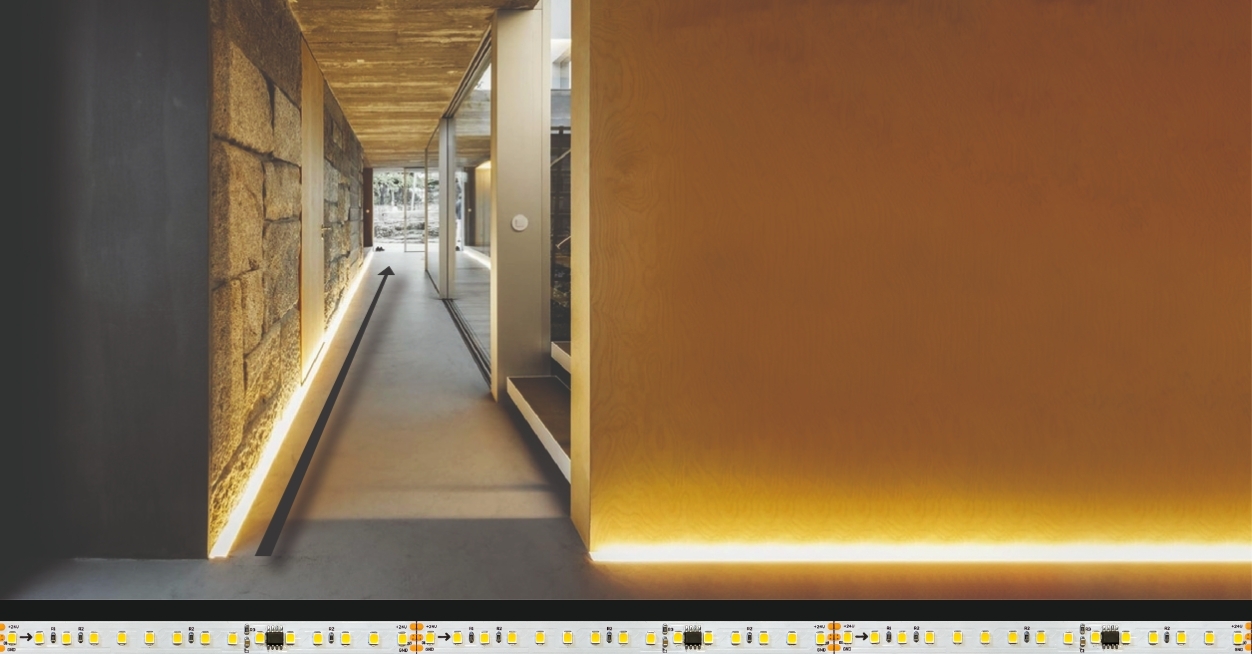 LED-Strip Runner SL120LBC20/R från LEDCO är en avancerad LED-strip utrustad med innovativ BUS-teknik som gör det möjligt att styra varje sektion individuellt. Detta öppnar för unika ljuseffekter och rörelsemönster som inte kan uppnås med vanliga LED-strips. Varje del av stripen kan programmeras att lysa, dimras eller ändra intensitet oberoende av övriga segment – perfekt för skapandet av levande ljusspel, scenbelysning eller dekorativa inomhusmiljöer.