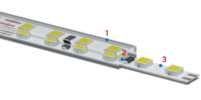 - Ljusdioder: 240 chips per meter för en homogen ljusfördelning