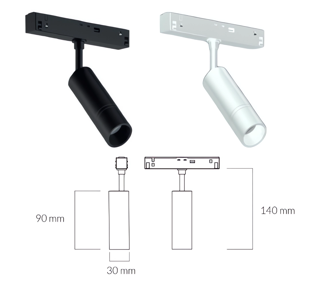 - Enkel och Flexibel Installation: Den magnetiska designen gör att spotten snabbt och säkert kan fästas på en kompatibel magnetskena, vilket underlättar installationen utan krångel.