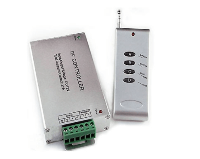 RGB BASIC RF STYRENHET gör det möjligt att på distans styra RGB-belysning via radiofrekvens. Enheten har en räckvidd på upp till 50 meter i öppet fält, vilket gör den idealisk för att enkelt kontrollera flerfärgad LED-belysning på avstånd.