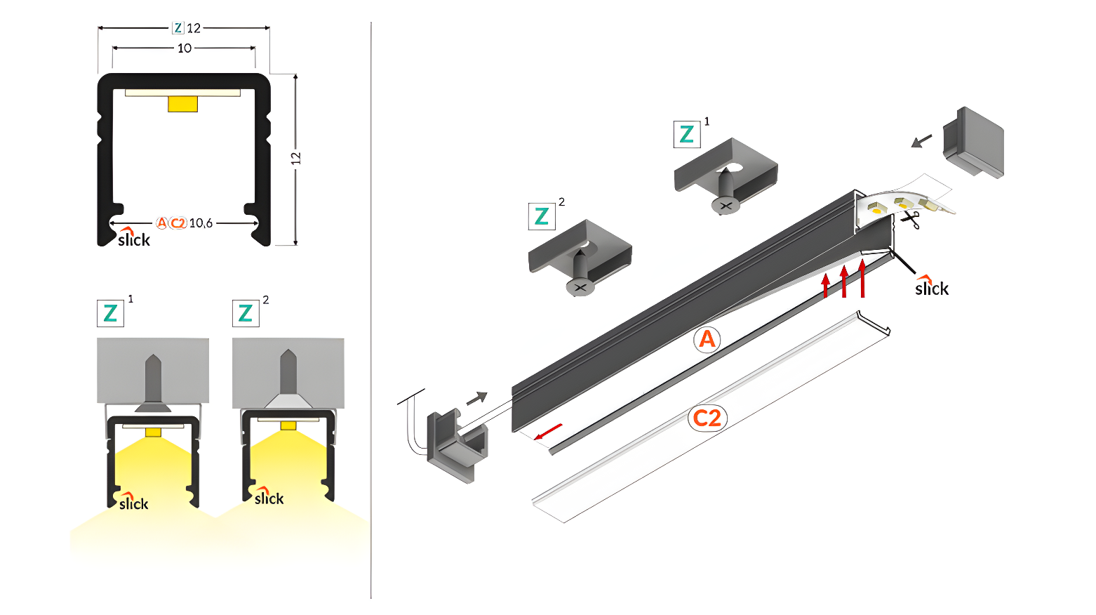 - Enkel installation med C2 Click-diffusor och Z-monteringsclips