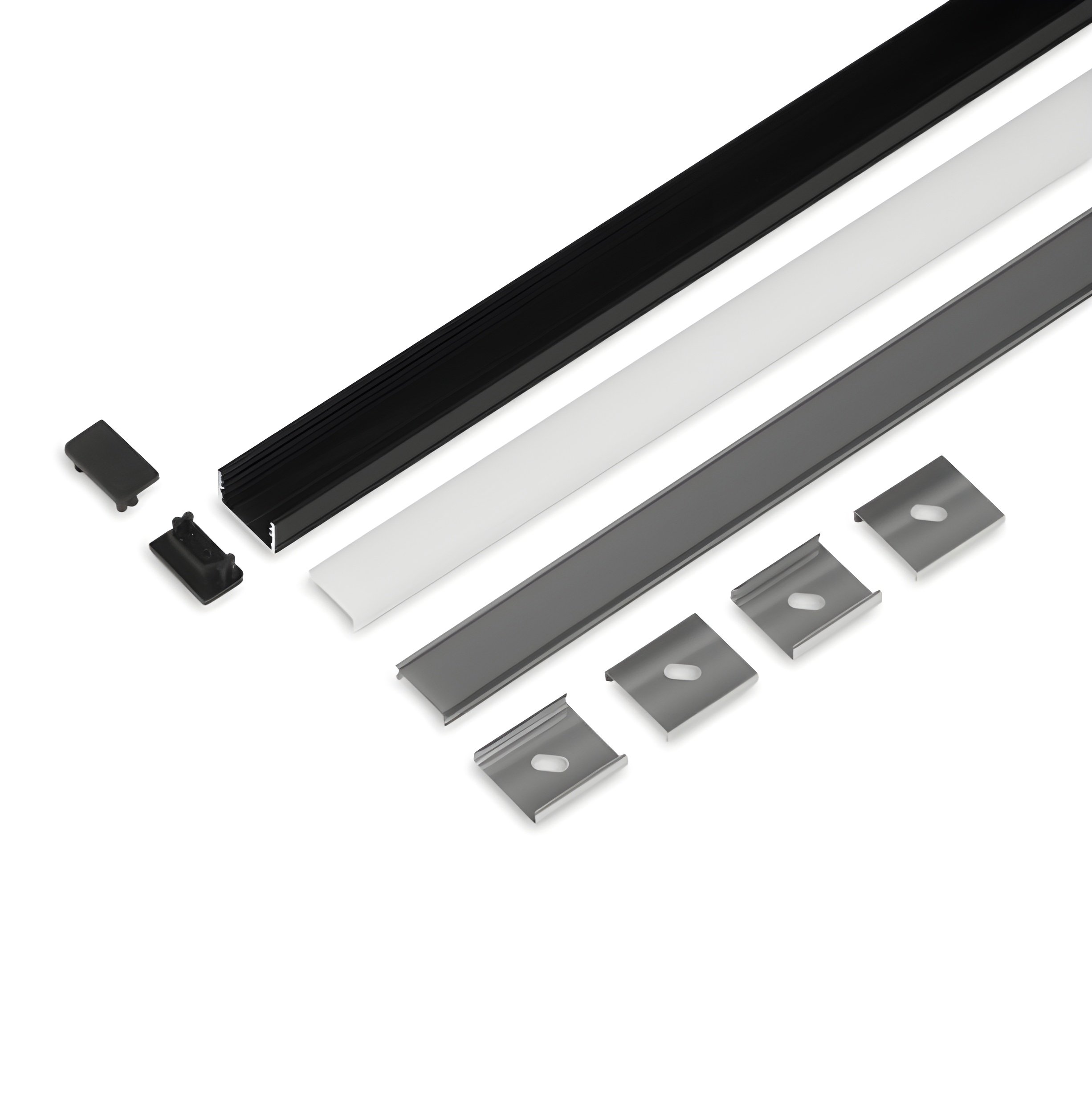 Detta exklusiva LED-profilset är designat för professionella och estetiska installationer av LED-strips. Med sin svarta anodiserade finish och robusta aluminiumkonstruktion ger UNI14 en stilren lösning för ytmontage, samtidigt som den erbjuder utmärkt värmeavledning och skydd för LED-lister. Perfekt kompatibel med Philips HUE och andra LED-strips upp till 14 mm.