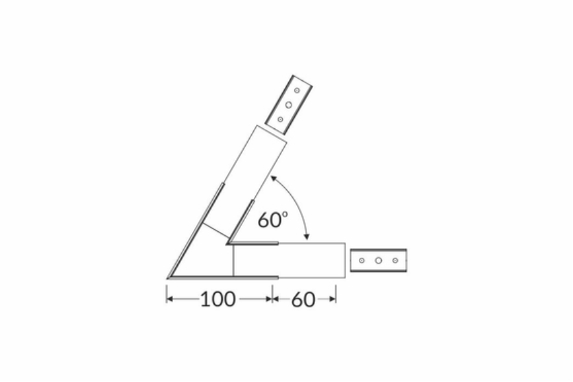 Perfekt för att sammanfoga VARIO30-02 LED-profiler i en 60° vinkel, idealisk för både bostads- och kommersiella miljöer där man söker en professionell och estetisk installation.