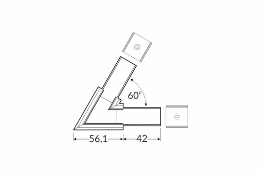 Idealisk för att sammanfoga LINEA-IN20 LED-profiler i en 60° vinkel, perfekt för både bostäder och kommersiella miljöer där en professionell och diskret montering önskas.