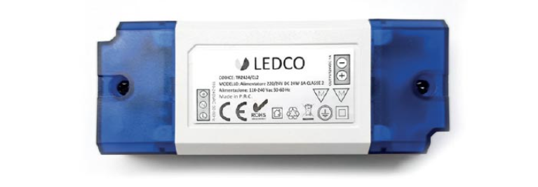 LED-driver TR2424/CL2 från LEDCO är en strömförsörjning för 24V DC-belysning, framtagen för stabil drift i inomhusmiljöer. Drivdonet är klassat som Class II (klass 2) och har en kompakt plastkapsling med naturlig ventilation, vilket gör den lämplig för mindre 24V-installationer där du vill ha en enkel och driftsäker lösning.