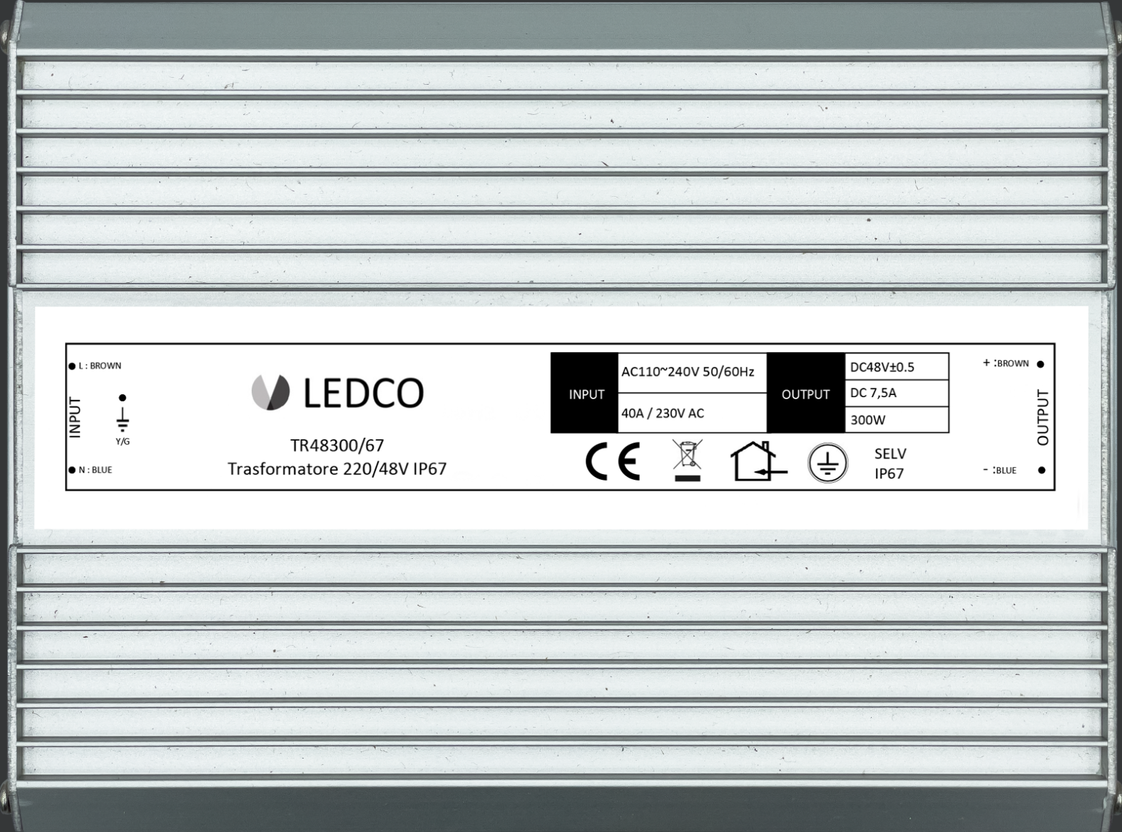 TR48300/67 är en robust strömförsörjning från LEDCO för 48V DC-system. Den är avsedd för både inomhus- och utomhusmiljöer och har IP67 för hög tålighet mot damm och vatten. Enheten är byggd i metall, är anpassad för vägg-/takmontage och levererar upp till 300W med stabil 48V DC för professionella installationer.